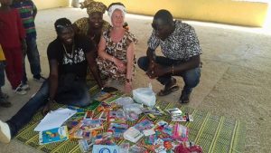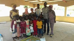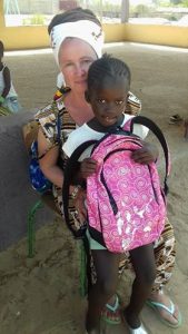 Cathy est allée rendre visite à sa filleule à l’école de Louly, les bras remplis de fournitures collectées auprès de ses amies de son cours de danse.